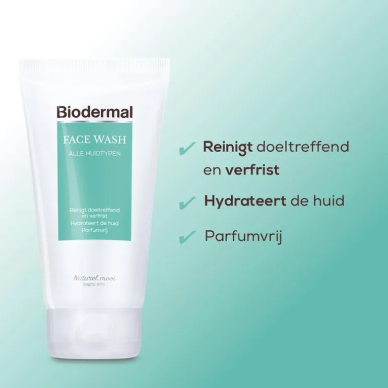 Weet jij waarom het belangrijk is om dagelijks je gezichtshuid te reinigen? Door een goede reiniging ’s ochtends en ’s avonds verwijder je niet alleen de make-up resten en de verontreiniging waar je huid dagelijks aan bloot staat, maar ook de dode huidcellen en het zweet en talg dat gedurende de dag gevormd wordt. Biodermal Face Wash gezichtsreiniging voor alle huidtypen reinigt grondig en zorgt voor een stralende huid. Een gereinigde huid neemt de werkzame stoffen van een dag- of nachtcrème beter op. Het is naast je dagelijkse verzorging dus een absolute must voor een mooie en stralende huid.