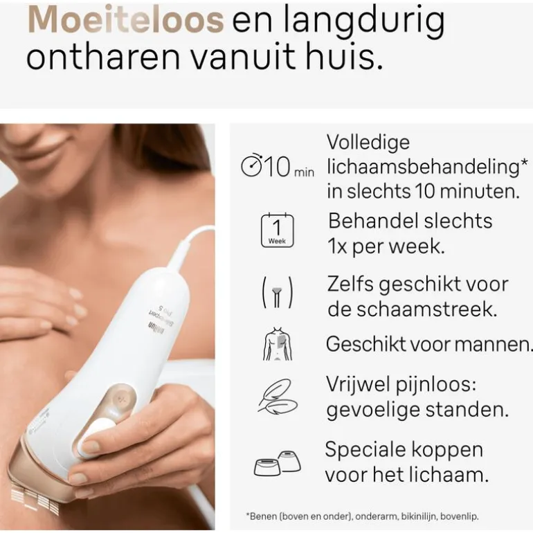 Zacht voor de huid dankzij 2 milde standen die de lichtintensiteit verminderen, voor een zachtere behandeling op gevoelige plekken