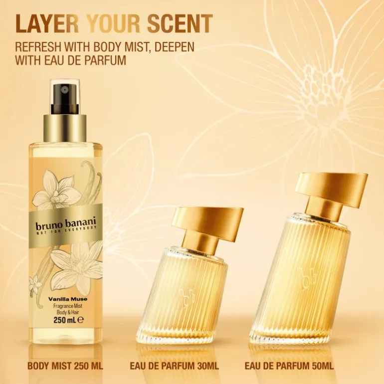 Wees je eigen muze met bruno banani Vanilla Muse, een verleidelijke en langhoudende amberachtige vanillegeur die met elke geurnoot je unieke aura onthult. De weelderige compositie opent met een heldere mix van pittige citroenolie en delicate witte bloemenakkoorden. Het geheel bouwt op naar een intens hart waarin romige vanille, sappige perzik en ylang-ylangolie samensmelten tot een omhullend vanilleakkoord, romig als een crême brûlée. Tot slot voegen noten van witte muskus een sensuele elegantie toe.