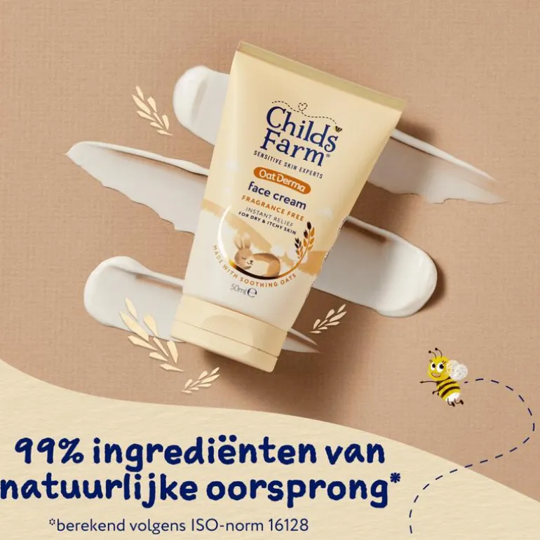 De OatDerma Gezichtscrème van Childs Farm biedt directe verlichting en hydratatie voor de gevoelige huid. Deze milde, parfumvrije crème, geschikt voor het hele gezin (inclusief pasgeborenen), helpt irritatie en ongemak van een droge huid te verzachten en biedt tot 24 uur hydratatie. De klinisch bewezen formule ondersteunt de huidbarrière en bevat 97% ingrediënten van natuurlijke oorsprong. Ideaal voor dagelijks gebruik, zonder zorgen over gevoelige huidjes.