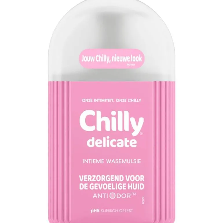 De Chilly Delicate Intieme Wasemulsie is speciaal ontwikkeld voor de gevoelige huid. Het zorgt voor langdurige bescherming en natuurlijke frisheid van de intieme zone. Deze wasemulsie is zeepvrij, klinisch getest en geschikt voor dagelijks gebruik. De frisse formule verrijkt met natuurlijke menthol verkoelt, reinigt en helpt nare geurtjes te bestrijden.