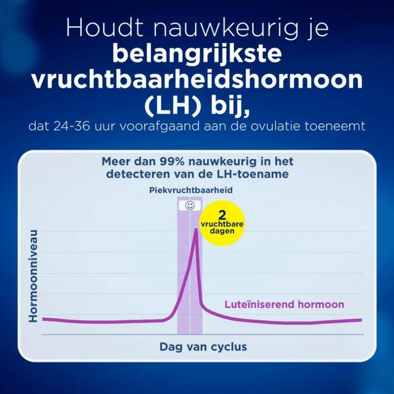 Meer dan 99% nauwkeurig bij het detecteren van de toename van luteïniserend hormoon (LH). Hormonen zijn een meer nauwkeurige voorspeller van ovulatie dan de basale lichaamstemperatuur die pas na de ovulatie stijgt