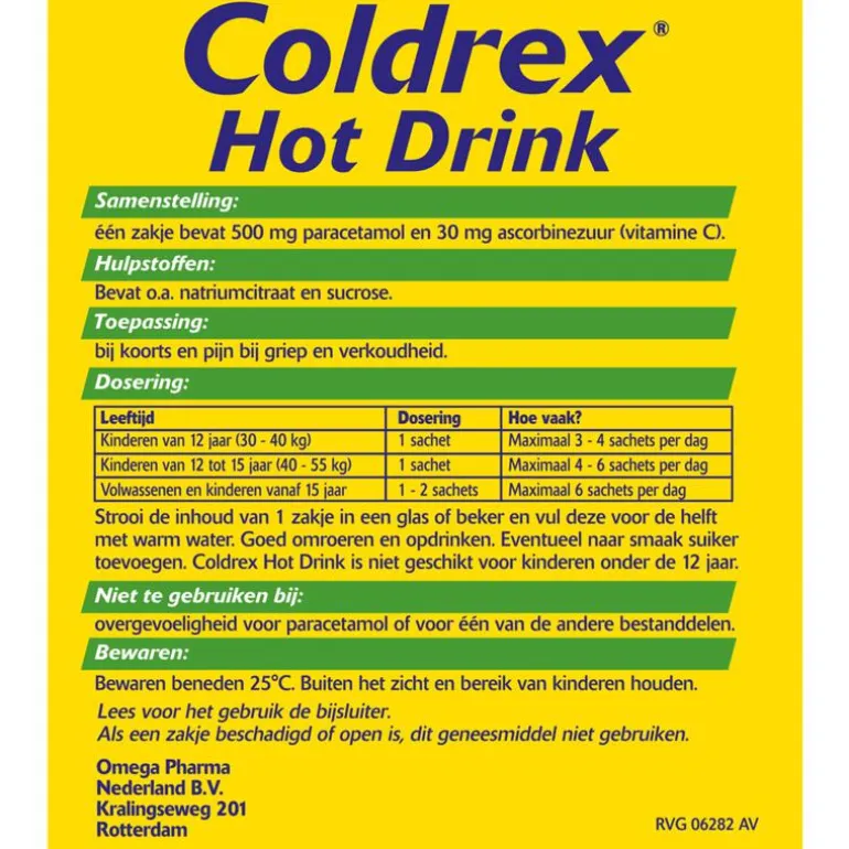 4 uur tussen innames aanhouden; eventueel suiker toevoegen. Niet langer dan 3 dagen bij koorts of 5 dagen bij pijn gebruiken zonder overleg met arts.