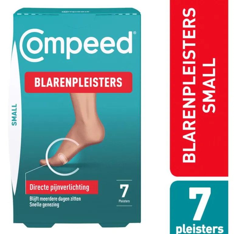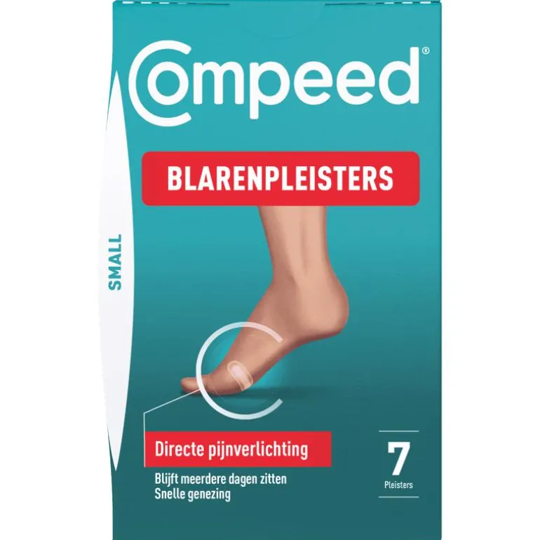 COMPEED® blarenpleisters bieden directe pijnverlichting, snellere genezing en blijven dagenlang zitten. Deze verpakking bevat 7 blarenpleisters, speciaal ontwikkeld voor kleine blaren. Dus heb jij een blaar? Behandel ze dan sneller met COMPEED®. De technologie met hydrocolloïde gel van COMPEED® absorbeert overtollig vocht en vormt een beschermend kussentje. De pleister verspreidt de druk van de blaar waardoor de pijn onmiddellijk wordt verlicht en de omstandigheden voor de genezing optimaal zijn.