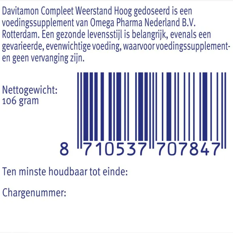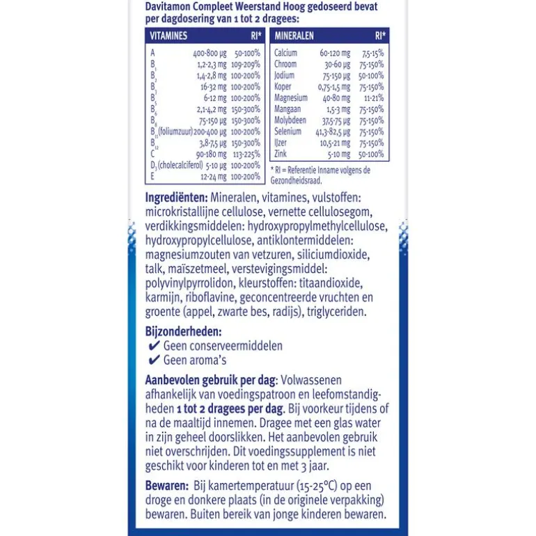 Davitamon Compleet Weerstand Forte is speciaal ontwikkeld voor volwassenen en bevat een extra hoge dosering van belangrijke vitamines en mineralen en is daarom: