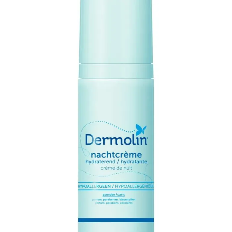 Dermolin Nachtcrème voedt de huid intensief en zorgt voor een optimaal herstel gedurende de nacht. De parfumvrije Dermolin Nachtcrème bevat geen conserveringsmiddelen en kleurstoffen. Het haverextract Symcalmin zorgt voor een kalmerende en verzachtende werking. Het ingrediënt Pentavitin herstelt de vochtbalans, zodat je goed verzorgd de nacht in gaat.