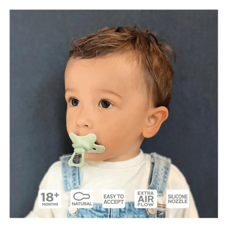 De Difrax fopspenen hebben een vlindervormig schildje. Hierdoor blijft het neusje vrij en sluit de speen mooi op het gezichtje aan. De gaatjes in het schildje zorgen voor extra luchttoevoer, dit voorkomt huidirritatie. De grootte van het fopspeenschildje is geschikt voor kindjes vanaf 18 maanden.