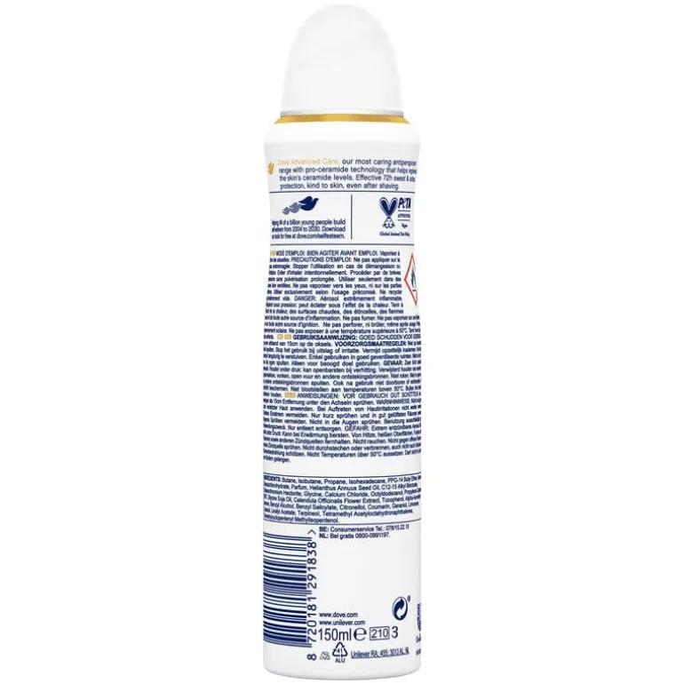 - Dove Advanced Care Soft Feel Anti-Transpirant Deodorant Spray