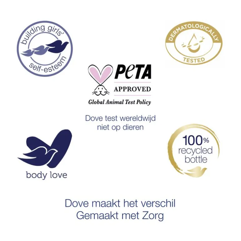 Als je graag nieuwe lichaamsverzorgingsproducten uitprobeert die goed zijn voor de planeet én voor je huid, hoef je niet verder te zoeken. Dove test nergens ter wereld op dieren en is door PETA gecertificeerd als Cruelty-Free, in overeenstemming met hun wereldwijde beleid voor dierproeven.