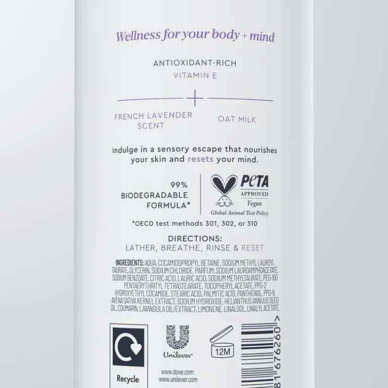 - Dove Body+Mind French Lavender & Oat Milk Serum Bodywash met antioxidant vitamine E
