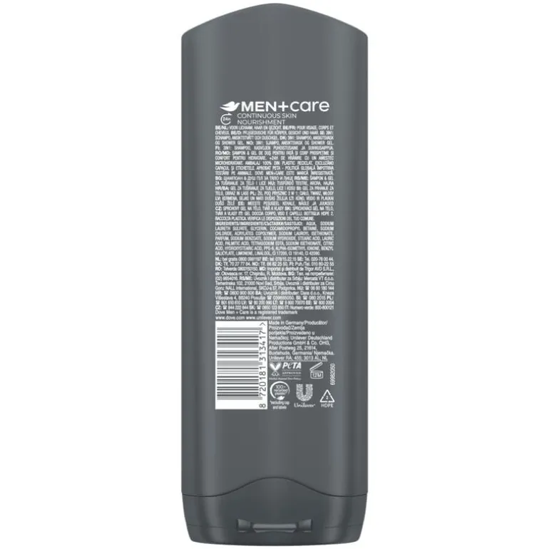 DOVE MEN+CARE CLEAN COMFORT 3-IN-1 VERZORGENDE DOUCHEGEL MET DE FRISSE GEUR VAN CITRUS EN CEDERHOUT EN 24H MICROMOISTURE TECHNOLOGIE VOOR EXTRA HYDRATATIE IS SPECIAAL ONTWORPEN VOOR MANNEN.• Dove Men+Care Clean Comfort 3-in-1 Verzorgende Douchegel voor mannen• 24H MicroMoisture technologie voor verzorging en hydratatie van de huid• Hydraterende bodywash met de frisse geur van citrus en cederhout• Dermatologisch geteste bodywash, geschikt voor lichaam, haar en gezicht• Een verbeterde formule met 3 keer meer huidversterkende voedingsstoffen• De fles van deze douchegel is gemaakt van 100% gerecycled plastic*