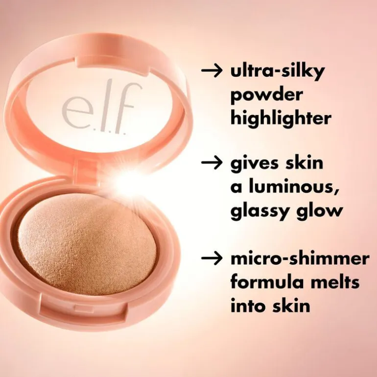 Geef je gezicht een stralende gloed met de Halo Glow Silky Powder Highlighter van e.l.f. Cosmetics, een ultrazachte poederhighlighter die je in de kijker zet. Het zit boordevol fijngemalen micro-shimmers die makkelijk in je huid blenden voor een zijdezachte, langhoudende, gloed van binnenuit. Deze soepele en fluweelzachte formule klontert niet, brokkelt niet en kan prachtig over e.l.f. Halo Glow Highlight Beauty Wand worden aangebracht voor een lichtreflecterende gloed. ●Ultrazachte, lichtjes aan te brengen poederhighlighter met een stralende finish ●Fijngemalen micro-shimmers die makkelijk in je huid blenden alsof je van binnenuit straalt ●Langhoudende formula die niet klontert en niet brokkelt en niet vettig aanvoelt ●Kan prachtig over e.l.f. Halo Glow Highlight Beauty Wand worden aangebracht voor een stralende gloed ●100% vegan, e.l.f. heeft twee cruelty-free certificaten van Leaping Bunny en PETA
