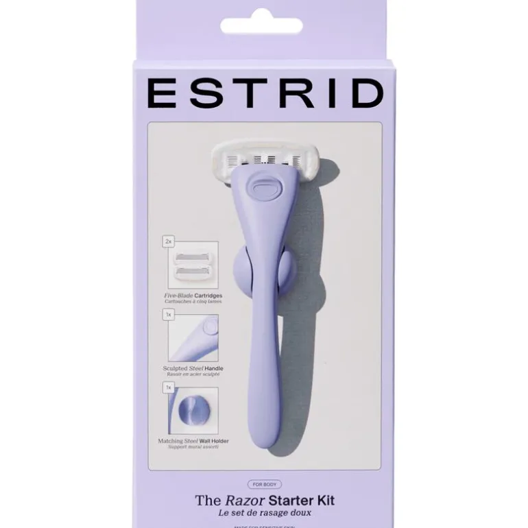 Het scheermesje van Estrid is speciaal ontworpen voor de gevoelige huid en heeft vijf superscherpe en dunne stalen mesjes voor een comfortabele scheerbeurt met een ultraglad resultaat. Onze kenmerkende vegan verzorgende strip met sheaboter en aloë beschermt de huid, voorkomt irritatie en zorgt ervoor dat het mesje moeiteloos over de huid glijdt. Het ergonomische handvat is gemaakt van verzwaard staal, voor een goede grip zodat je niet uitschiet. Het scheermes wordt geleverd met een matchende wandhouder, zodat je je scheermes altijd bij de hand hebt.