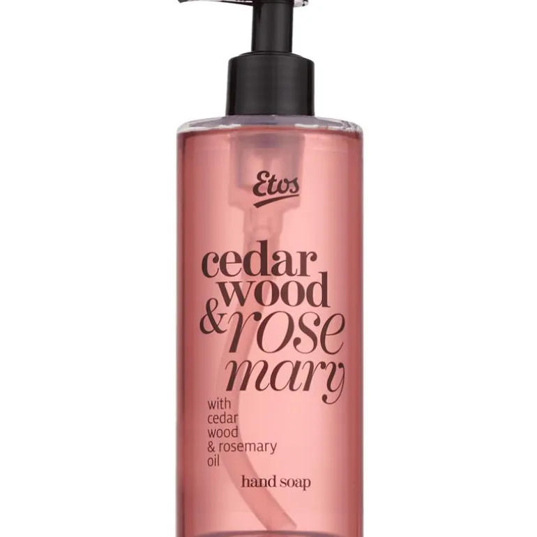 Etos Cedar Wood & Rosemary handzeep 300 ml is verrijkt met de olie van aromatische rozemarijn en kalmerend cederhout. Deze handzeep
