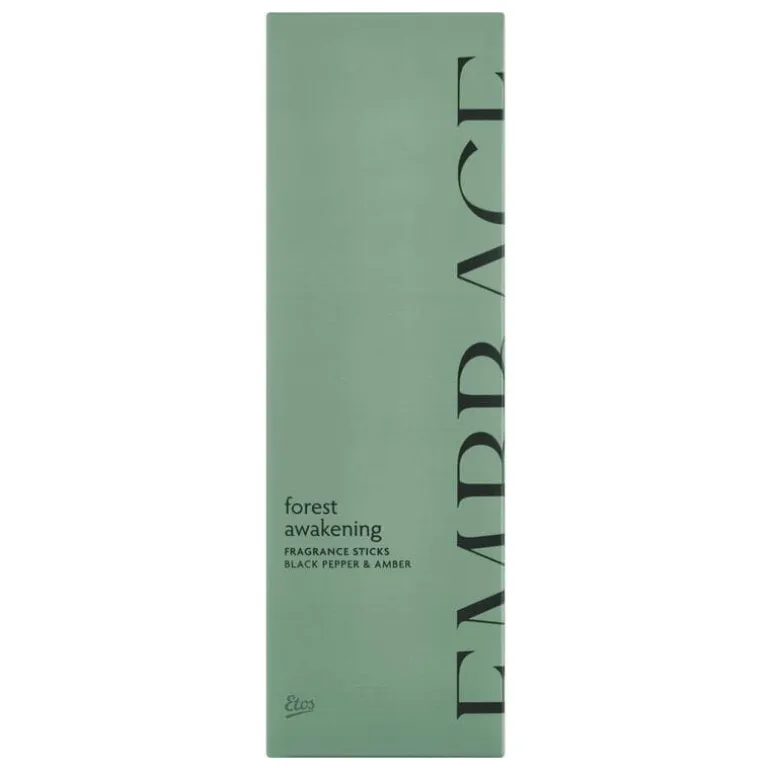 Etos Embrace Fragrance Sticks Forest Awakening zijn aromatische geurstokjes gemaakt met essentiële oliën. De geurstokjes gaan mee tot 12 weken en verspreiden langdurig een subtiele geur.