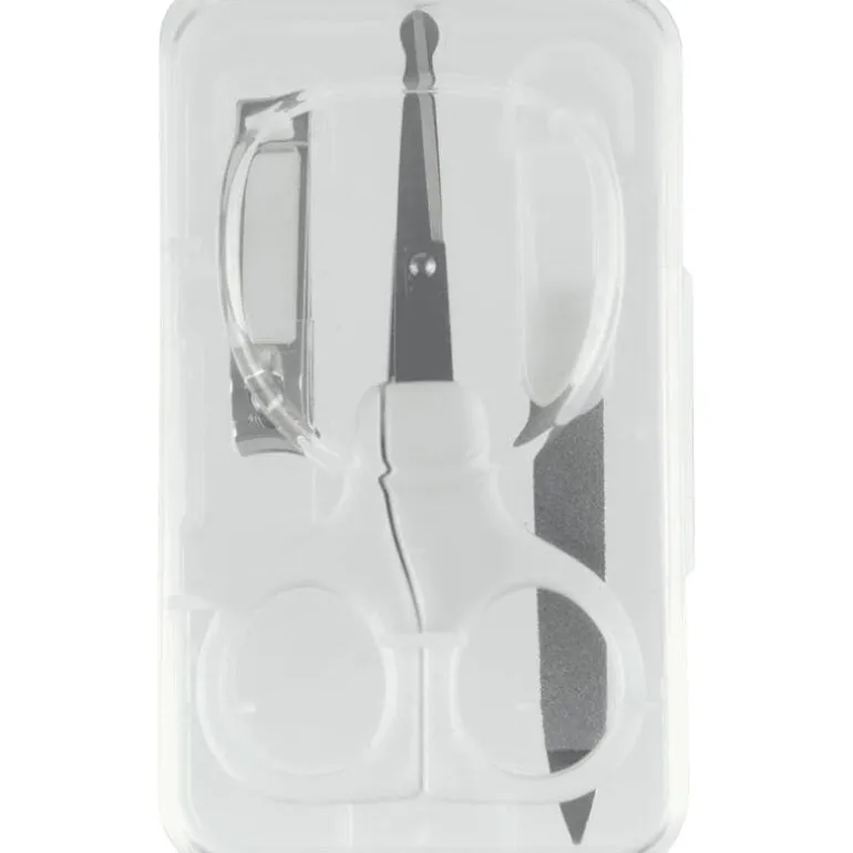 De Etos manicure set bestaat uit een schaartje met afgeronde punten, een nagelknippertje met gebogen knipkantjes