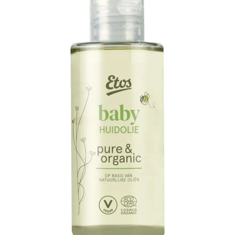 Etos Pure & organic baby huidolie is op basis van natuurlijke zonnebloemolie. De olie is geschikt om de huid van je baby te verzorgen en te masseren.