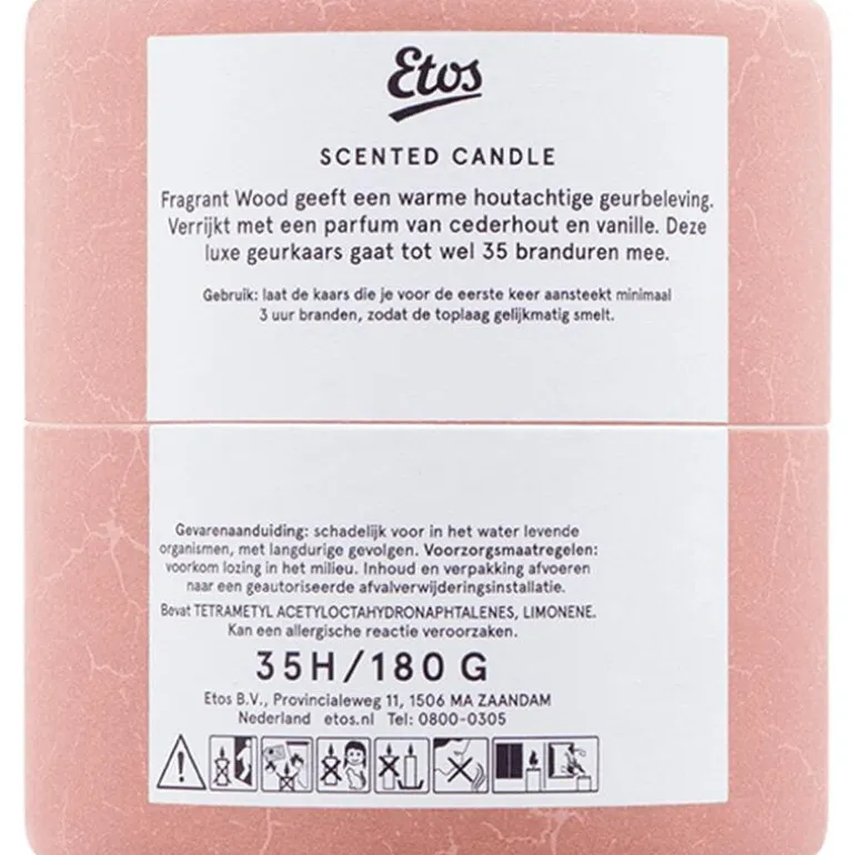 Etos geurkaars Fragant Wood geeft een warme houtachtige geurbeleving.