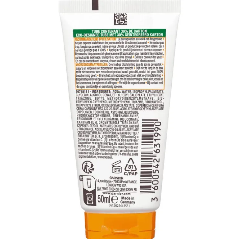 Onze zonnebrandcrème met SPF 50+ en vitamine Cg helpt tekenen van veroudering door de zon te voorkomen en hydrateert de huid tegelijkertijd.