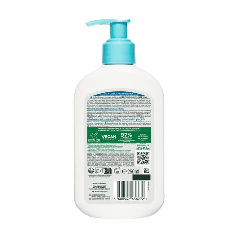 - GARNIER HYALURON+ HYDRATERENDE GEZICHTSREINIGINGSGEL: voor een schone, gehydrateerde huid