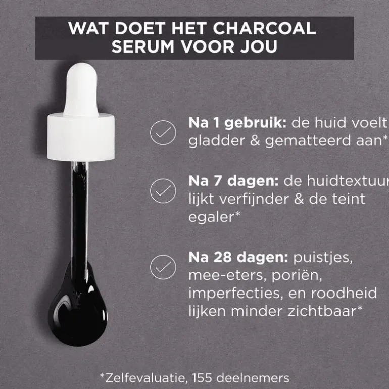 - Bevat AHA + BHA, Charcoal, Niacinamide en Salicylzuur