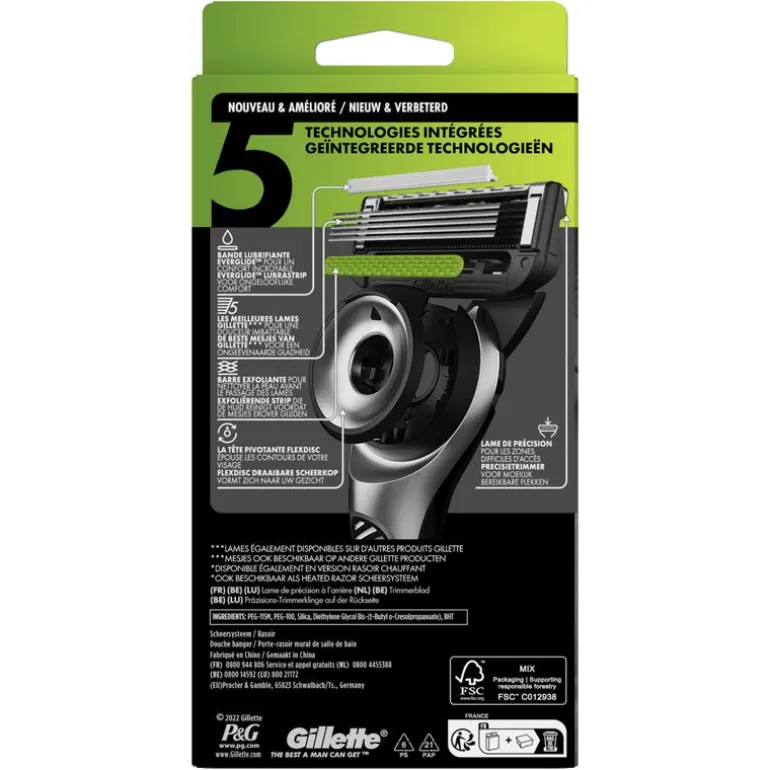 - Onovertroffen gladheid dankzij 5 van de beste mesjes van Gillette* (*mesjes ook beschikbaar op andere Gillette-producten) EVERGLIDETM Lubrastrip zorgt voor lubricatie voor ongelooflijk huidcomfort