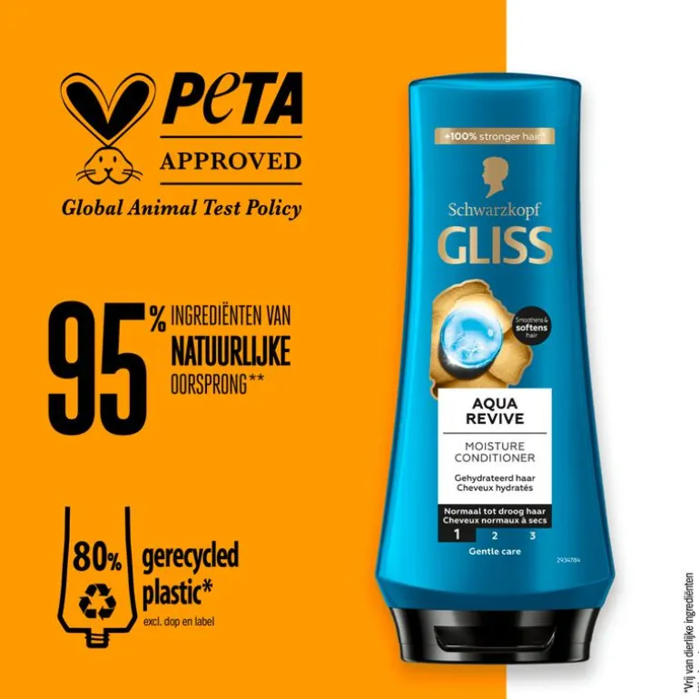 Net zoals een droge huid vocht nodig heeft, heeft het haar speciale verzorging nodig. Gliss Aqua Revive vochtinbrengende conditioner combineert hyaluron en zeealgen om normaal tot droog haar tot 48 uur na het aanbrengen diepgaand te hydrateren.