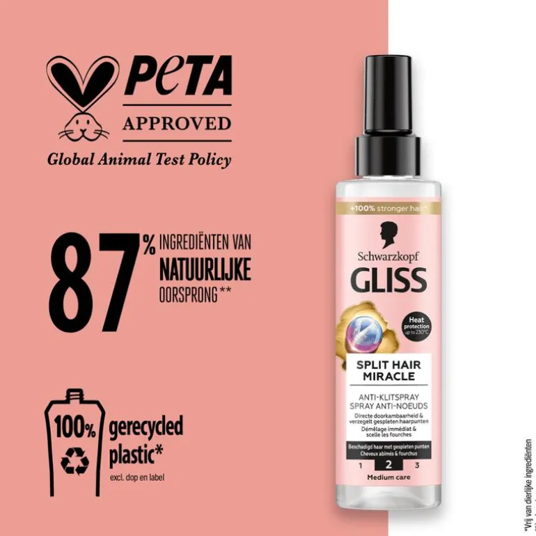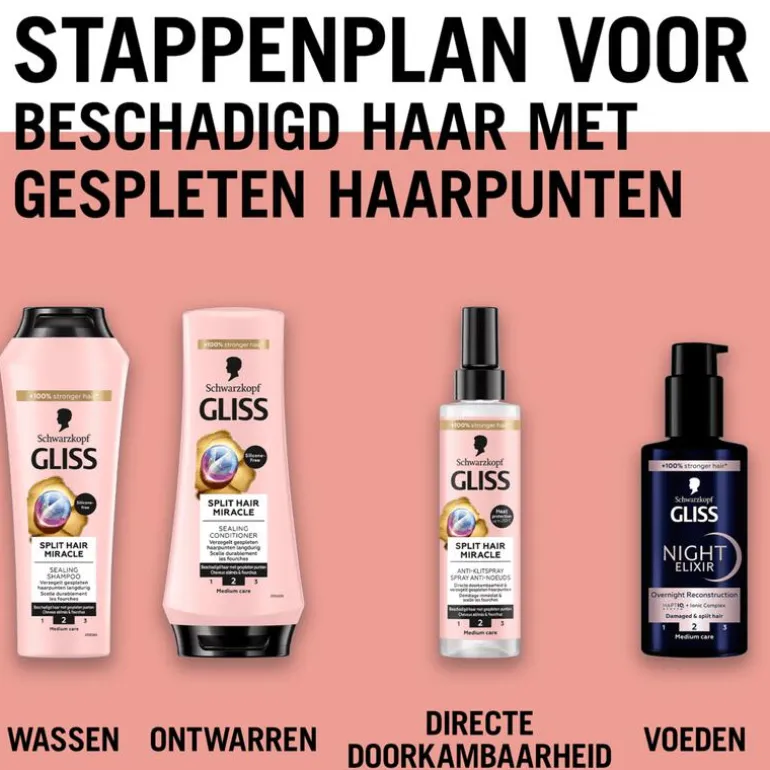 - Gliss Care Level: 2 – Medium verzorging, met een uitgebalanceerde samenstelling van voedende ingrediënten.