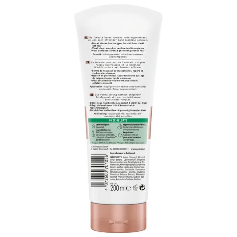 De formule met voedend rode-algenextract en zeer effectief bond-building complex herstelt het haar en geeft het nieuwe kracht.
