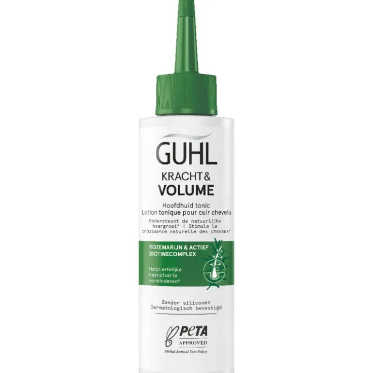 Guhl Kracht en Volume Hoofdhuid Tonic ondersteunt de natuurlijke haargroei en helpt erfelijke haartuitval te verminderen*. De hoofdhuid tonic , geformuleerd met vitaliserend rozemarijnextract en een actief biotine complex , stimuleert de haarwortels en geeft het haar weer nieuwe kracht. Voor merkbaar sterker haar vanaf de wortels!