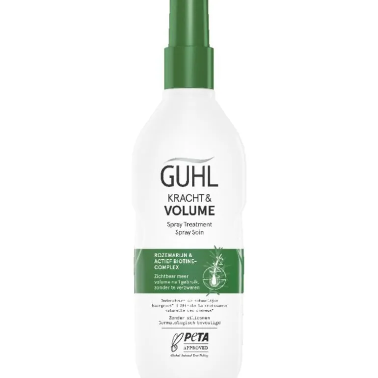 Guhl Kracht en Volume Spray geeft zichtbaar meer volume na slechts 1 keer gebruik. De formule met vitaliserend rozemarijnextract en een actief biotine complex, versterkt merkbaar dunner wordend haar dat gevoelig is voor haaruitval en biedt gewichtloze verzorging en hydratatie. Voor zichtbaar dikker haar! De vegan formule is zonder ingrediënten van dierlijke oorsprong en bevat geen siliconen. De flacon bestaat voor 99% uit gerecycled materiaal. De spray is geproduceerd in Duitsland, bevat voor 98% ingrediënten van natuurlijke oorsprong** en is tot 99% biologisch afbreekbaar***. Verder is de spray dermatologisch bevestigd. **conform ISO 16128, incl. 87% water.***conform OESO-richtlijnen en incl. water.