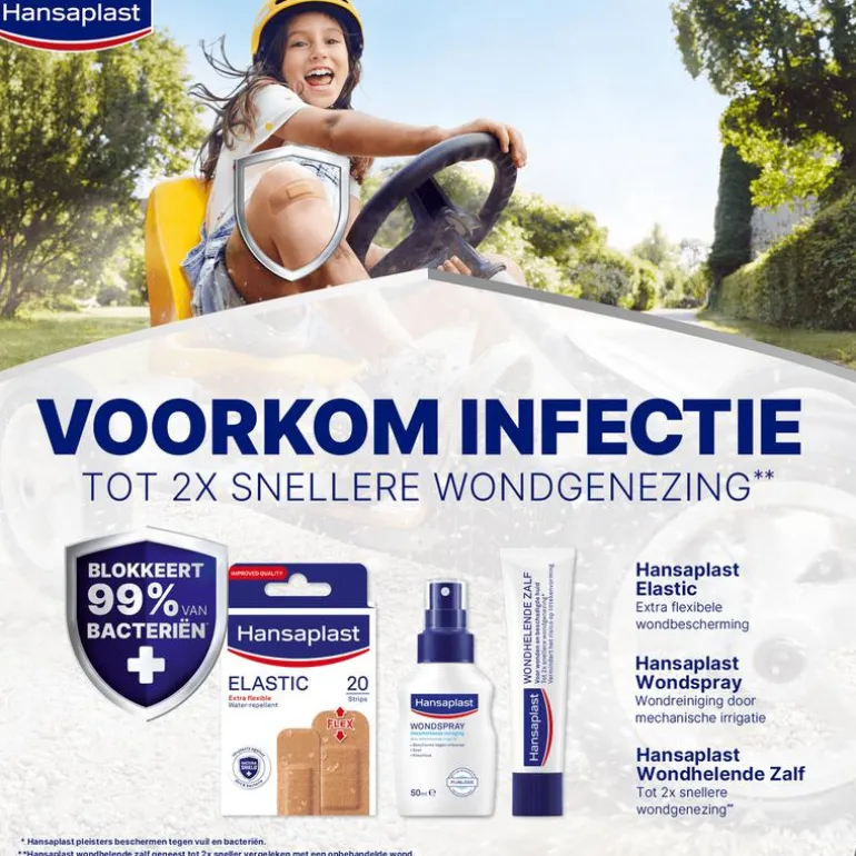 *Hansaplast pleisters blokkeren 99% van vuil en bacteriën.