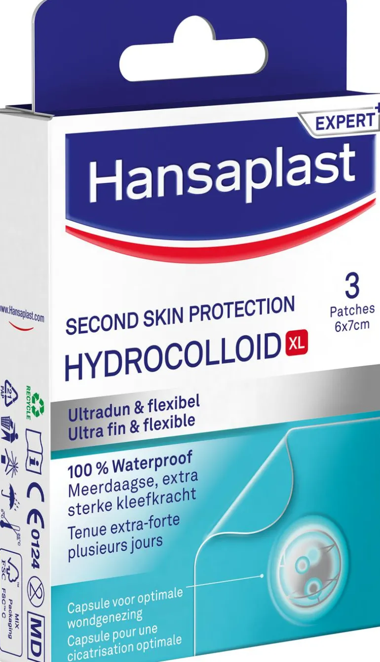 Hansaplast Second Skin Protection XL: ultradunne, flexibele en zelfklevende pleisters voor het beschermen en verzorgen van alledaagse wonden. De waterproof en discrete pleister beschermt als een tweede huid en sluit de wond af tegen vuil en bacteriën zodat de wond in een schone omgeving sneller kan genezen. Ervaar verzachtende pijnverlichting terwijl de hydrocolloïde technologie het natuurlijke genezingsproces versnelt. De pleister blijft 72 uur** zitten dankzij de extra sterke fixatie.