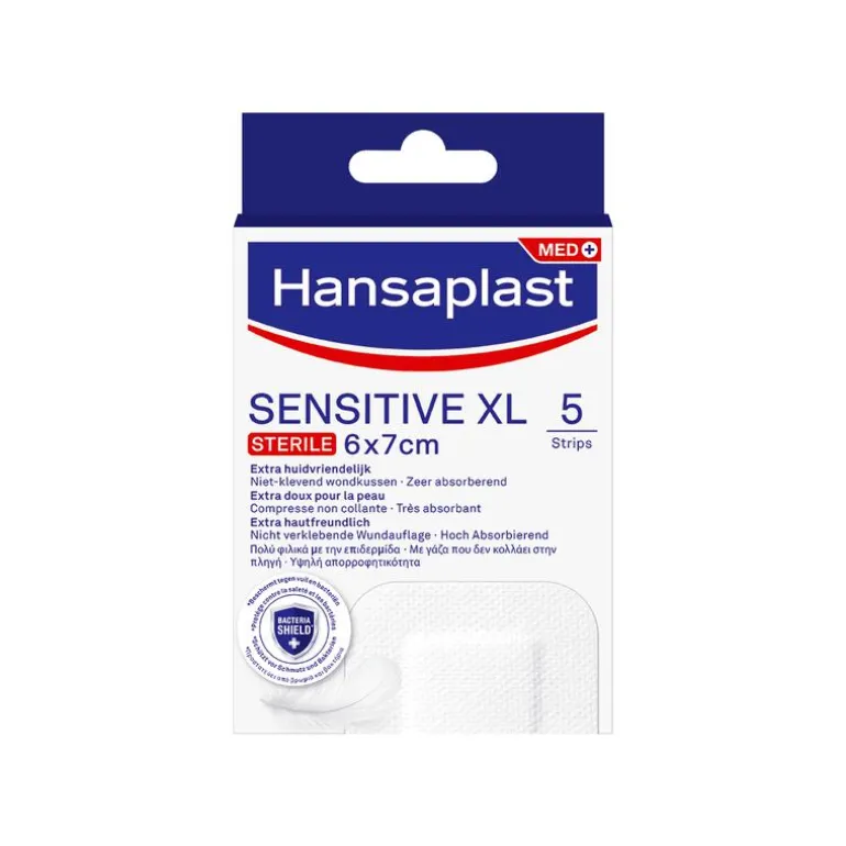 Hansaplast Sensitive XL pleisters zijn steriele wondpleisters voor de bescherming van grotere en postoperatieve wonden. Het extra huidvriendelijke en ademende materiaal hecht goed aan de huid maar is toch pijnloos te verwijderen. De extra grote wondpleister bedekt de wond zonder er aan vast te plakken, wat zorgt voor een comfortabel gevoel tijdens het dragen.