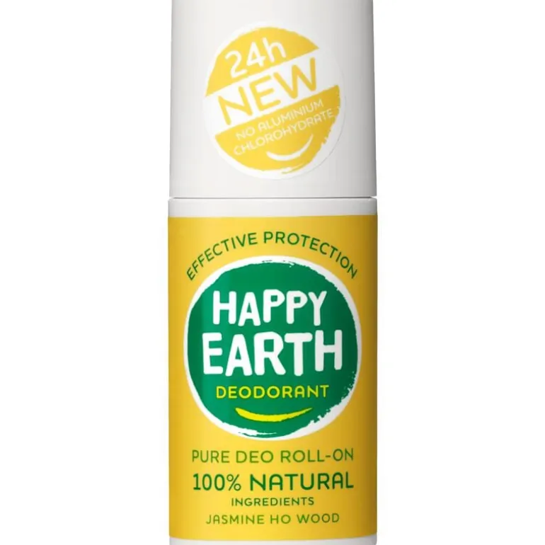 “HAPPY EARTH Pure Deodorant Roll-On Jasmine Ho Wood is een 100% natuurlijke, vegan deodorant die gemaakt is van ingrediënten waar jouw huid én de aarde blij van worden. Met een unieke blend van 100% natuurlijke geurextracten en essentiële oliën is de deodorant niet alleen 100% effectief, maar ook 100% verzorgend. Deze deodorant is aluminiumvrij en bevat geen alcohol, parabenen of drijfgassen. Met trots dragen wij dan ook de keurmerken van NATRUE en Vegan Society. Met deze deodorant zorg je goed voor jezelf en voor onze aarde!