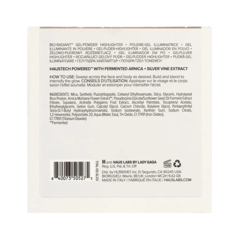 Geef je huid een stralende boost met de Bio-Radiant™ Gel-Poeder Highlighter van Haus Labs by Lady Gaga. Deze innovatieve highlighter smelt als het ware samen met je huid en laat een pure, gezonde glow achter. Dankzij de krachtige HausTech™-formule en verzorgende ingrediënten zoals gefermenteerde arnica en zilvervijne-extract, combineert dit product prachtige glans met huidliefde. De tint Peach Quartz – Golden Peach geeft je teint een warme, zonovergoten gloed die de hele dag blijft zitten.