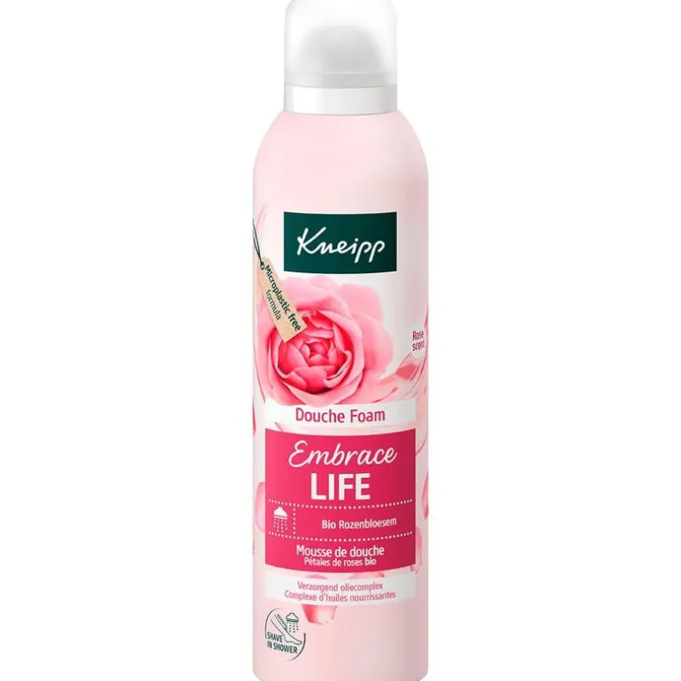 Vind je schoonheid in de zachtheid van rozen met de Kneipp Douche foam Embrace Life. Deze hydraterende wolk van schuim is een beschermende traktatie voor de droge huid. Ideaal voor iedereen die voelbaar te maken krijgt met sporen van huidveroudering. Met biologische rozenbloesem en verzorgend oliecomplex: (amandel, jojoba, argan).Geur: De delicate rozenbloesems ruiken bloemig, vrouwelijk, warm en elegant.Multi-functioneel: perfect voor het scheren van het lichaam tijdens het douchen. Gevoel van luxe en zelfvertrouwen