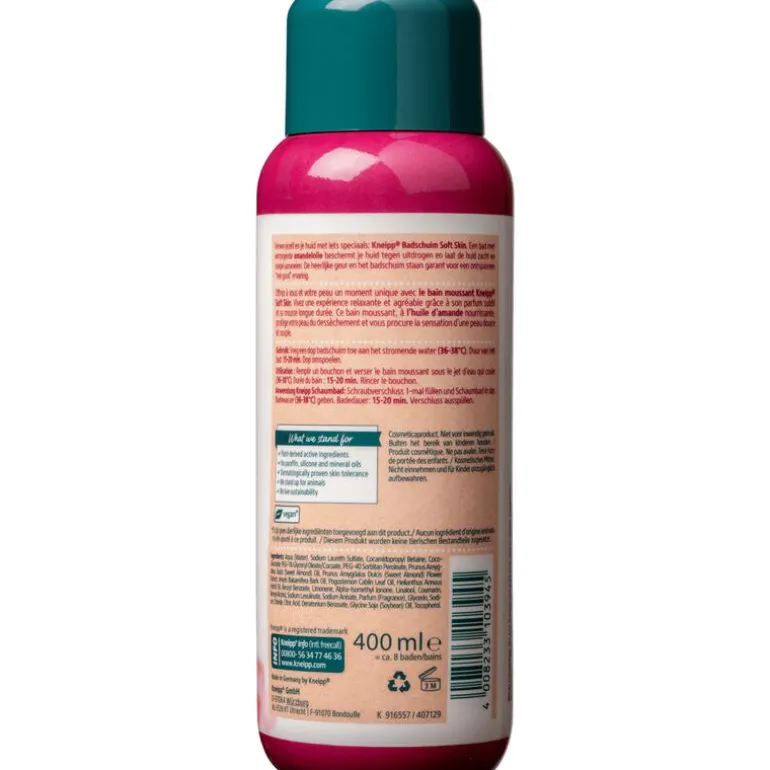 Verwen jezelf en je huid met iets speciaals: Kneipp badschuim Soft Skin – Amandelbloesem. Een bad met verzorgende amandelolie beschermt je huid tegen uitdrogen en laat de huid zacht en soepel aanvoelen. De heerlijke geur en het badschuim staan garant voor een ontspannen “feel good” ervaring.