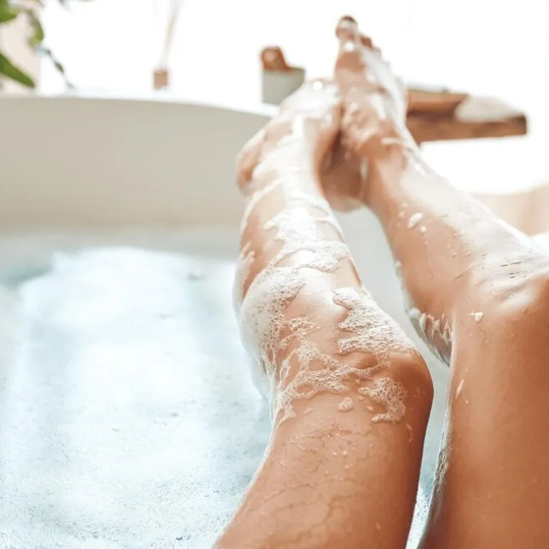 Voeg een dop badschuim toe aan het stromende water (36-38°C). Duur van het bad: 15-20 min. Dop omspoelen.
