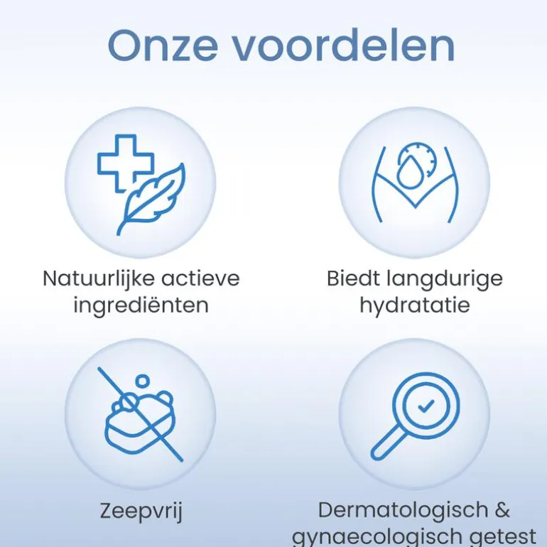 Biedt 8 uur hydratatie voor de gevoelige intieme zone.Verlicht droogheid & jeuk.