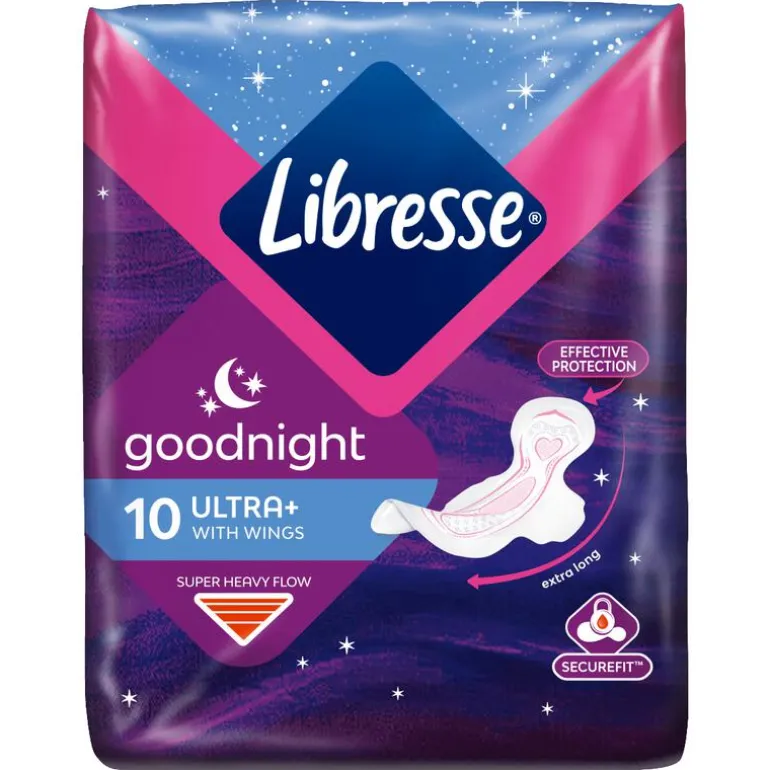 Libresse Ultra Thin Maandverband Goodnight 10 stuks is wat langer en heeft vleugels voor nog meer zekerheid gedurende de nacht. Het ongeparfumeerde maandverband volgt de natuurlijke lijnen van je lichaam en dankzij de unieke voor- en achterkant past het perfect en verschuift het niet. Het lange maandverband met vleugels is voorzien van het Roll.Press.Go systeem. Zo kun je het aandverbandje makkelijk, hygiënisch , discreet en geurloos afsluiten en weggooien. Libresse Ultra Thin Maandverband Goodnight biedt je drievoudige bescherming tegen doorlekken door de anti-lekrandjes en de snel absorberende kern!