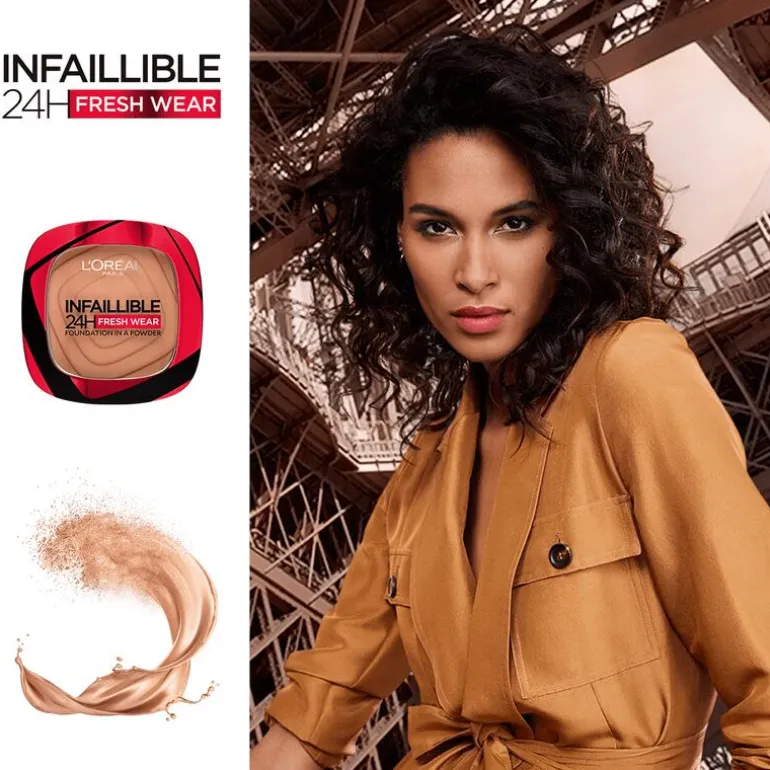 Ontdek de kracht van de L’Oréal Paris Infaillible 24H Fresh Wear Foundation in poedervorm. Deze poeder combineert het beste van beide werelden: de dekking van een foundation en het gemak van een poeder. De formule is doordrenkt met ultrafijne kleurpigmenten die zich aan je huid hechten voor een langdurige dekking zonder het gevreesde maskereffect. Met deze foundation in poedervorm bereik je moeiteloos een natuurlijke, egale finish die de hele dag blijft zitten. Het matteert de huid en camoufleert oneffenheden net zo effectief als een vloeibare foundation, maar dan met het comfort en de handigheid van een poeder. Bovendien is de Infaillible 24H Fresh Wear Foundation in a Powder ontworpen om niet af te geven en voelt het heerlijk comfortabel aan op de huid. Verwen jezelf met een langdurige, natuurlijke look die perfect past bij jouw levensstijl. Met deze foundation in poedervorm hoef je nooit meer compromissen te sluiten tussen dekking, comfort en gemak. Omdat je het waard bent.