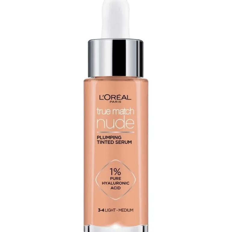 Het L’Oréal Paris True match Nude Volumegevend getint serum is nu verrijkt met micro epidermale hyaluronzuur, een ingrediënt dat extra goed wordt opgenomen door de opperhuid. Het resultaat? De formule kan nog beter helpen de huid te verbeteren en laat deze er voller uitzien in slechts 1 uur*! Met dit product kun je je de voordelen van een huidverzorgingsserum combineren met de dekking van een foundation. Direct na het aanbrengen ziet de huid er stralender en egaler uit. De formule voelt licht aan op de huid en geeft een natuurlijk resultaat. True Mach Nude helpt de huid zichtbaar te verbeteren: onmiddelijk en na verloop van tijd. Het laat de huid er in 1 uur* voller uitzien waardoor fijne lijntjes minder zichtbaar zijn. Daarnaast hydrateert het de huid 24uur** lang. De formule bevat niet alleen hyaluronzuur maar ook glycerine. Hyaluronzuur trekt vocht aan en glycerine zorgt dat het beter door de huid wordt vastgehouden. Na 4 weken gebruik ziet de huid er gladder uit en heeft deze minder droge plekjes. De formule is non-comedogeen, dit houdt in dat de formule de poriën niet verstopt en geschikt voor de gevoelige huid. *Klinische score, 84 personen. ** Instrumentele test Tip: Probeer ook L’Oréal Paris Lumi glotion. Deze kan je aanbrengen over je make-up voor een gloweffect op een gedeelte van je gezicht.