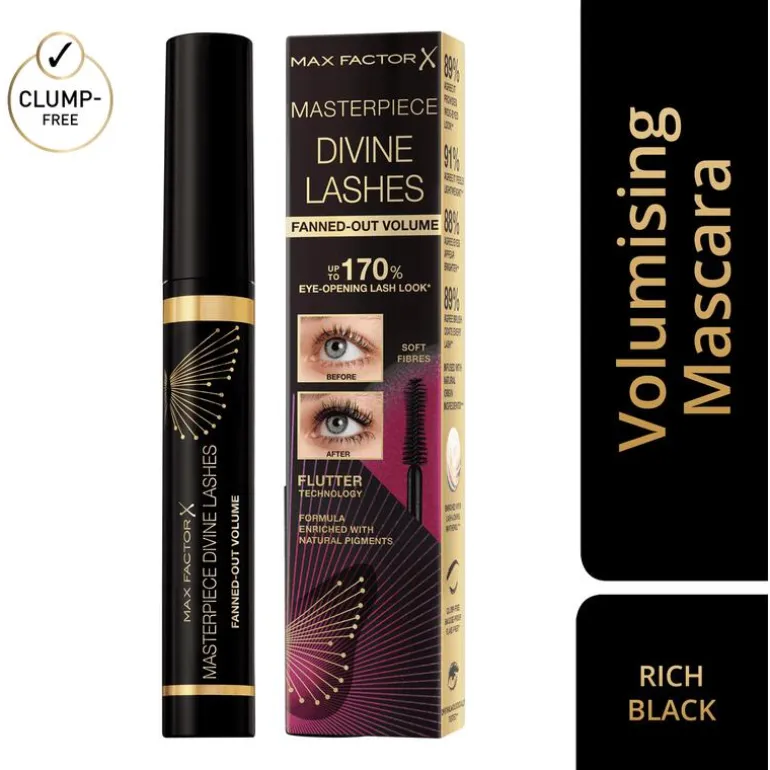 Prachtige volle en gesepareerde wimpers met de nieuwe Divine Lashes mascara van Max Factor, die zorgt dat je oogopslag er tot 170% opener uitziet*.