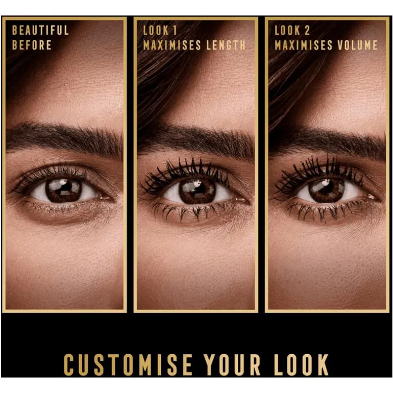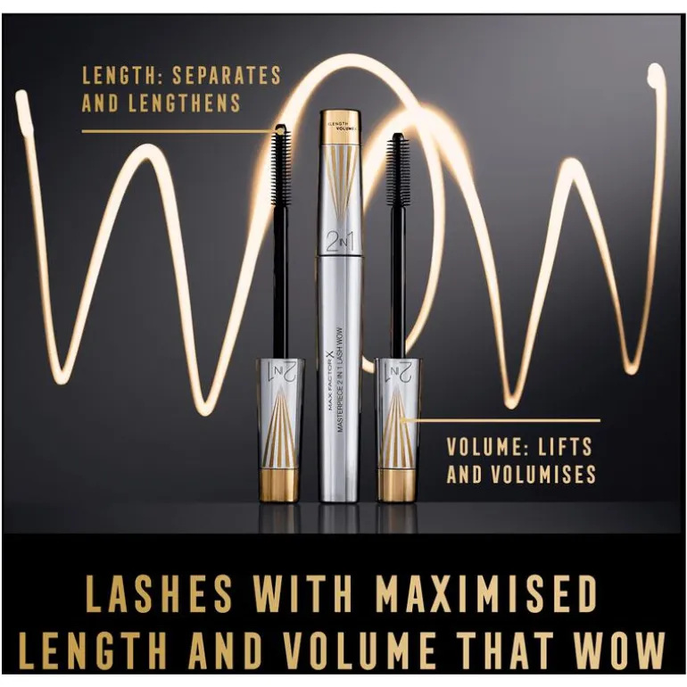 De Max Factor Masterpiece 2 In 1 Lash Wow Mascara zorgt ervoor dat wimpers langer lijken en geeft ze een echte volumeboost. Kies jouw favoriete make-uplook door het unieke, eenvoudig te gebruiken borsteltje simpelweg om te draaien en ga voor maximale resultaten. Verleng en separeer, of lift en geef volume: de keuze is aan jou! De vegan formule bevat weldadige ingrediënten die je wimpers verzorgen. De mascara schilfert niet, is makkelijk zonder klontertjes aan te brengen en blijft de hele dag lang mooi zitten, zonder af te geven. De langhoudende, gladde formule van deze volumeverhogende en verlengende mascara is eenvoudig en nauwkeurig aan te brengen over de hele lengte en zelfs op de wimpers in de binnenste ooghoeken. De formule is oftalmologisch getest, waardoor deze Max Factor mascara geschikt is voor personen met gevoelige ogen of personen die contactlenzen dragen. Geef jouw wimpers die WOW-factor!
