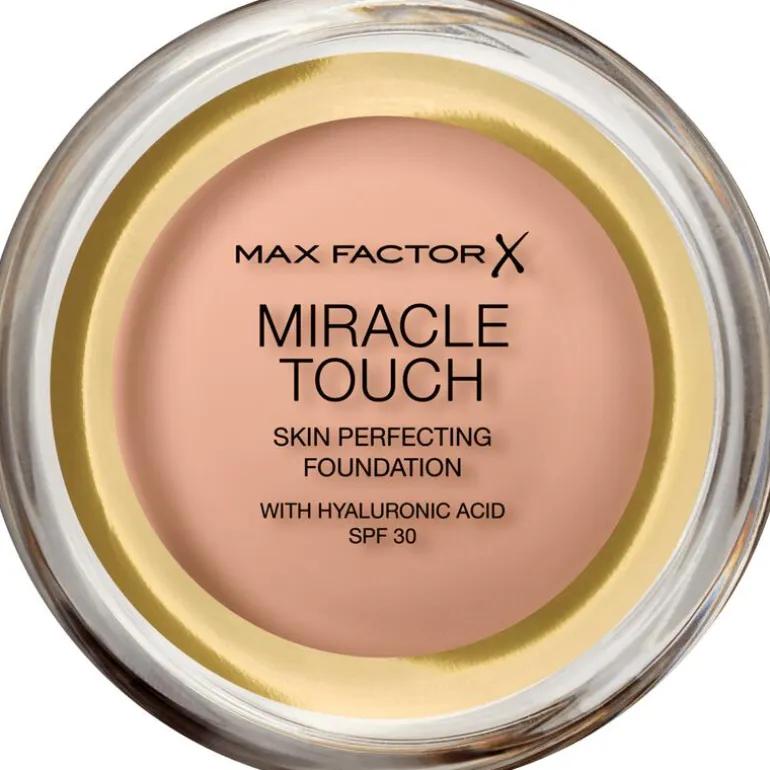 De Miracle Touch Foundation van Max Factor is hét beautyproduct voor een snelle en makkelijke opmaakroutine. Het is een concealer, foundation en poeder in één die je een frisse en egale huid geeft dankzij de unieke vast-naar-vloeibaar formule. Door de warmte van je vingers wordt de vaste foundation vloeibaar en is daardoor eenvoudig aan te brengen. Hiernaast kun je met de Miracle Touch een dun, lichtgewicht resultaat creëren, maar de foundation ook gemakkelijk opbouwen naar een hogere dekking. De vernieuwde formule is verrijkt met hylaronzuur en spf 30 en zorgt voor ultieme hydratatie terwijl het risico van vroegtijdige veroudering van de huid door zonschade verminderd wordt.