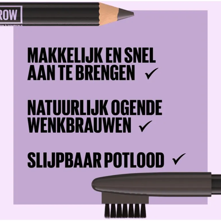Maybelline New York Express Brow Shaping Pencil is een gemakkelijk aan te brengen, slijpbaar wenkbrauwpotlood met ingebouwd borsteltje. Teken met het potlood en breng in model met de borstel.