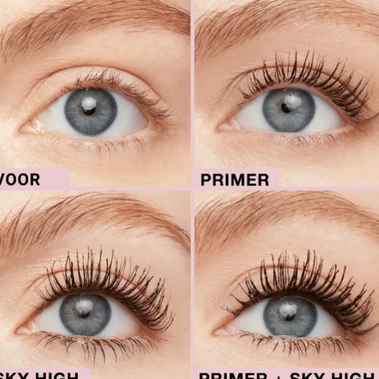 Maak kennis met Lash Sensational Sky High Tinted Primer, onze 1e getinte primer voor extreme lengte* + verzorging. Sky High impact versterkt. Deze mascaraprimer verlengt, verdikt en verzorgt de wimpers. Wanneer gedragen met mascara, zag 90% ultralange wimpers**. Tot 1,5x meer volume in vergelijking met het gebruik van enkel de Sky High wasbare mascara. *Wanneer gedragen met Sky High wasbare mascara, **In een consumententest met hun gebruikelijke mascara