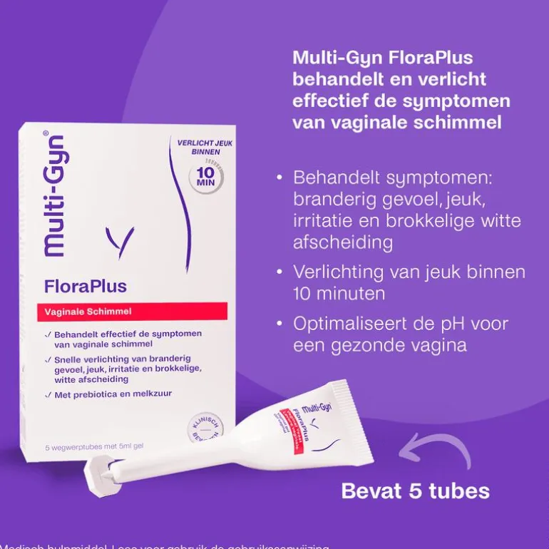 Verlicht jeuk binnen 10 minuten vanaf het 1e gebruik. Klinisch bewezen. Multi-Gyn FloraPlus is samengesteld met natuurlijk 2QR-complex, melkzuur en prebiotica. De gel heeft een optimale pH voor een gezonde vaginale flora. Bevat geen parfum, hormonen of ingrediënten van dierlijke oorsprong.