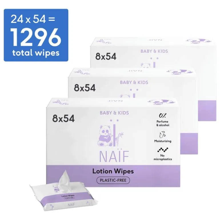 Naïf plasticvrije lotion doekjes zijn alles wat je van een billendoekje mag verwachten: sterk, goed vochtig, met ingrediënten die de gevoelige babyhuid goed verzorgen. Daar horen polyester vezels en microplastics niet bij. Dus, gewoon een fijn doekje, dat reinigt en verzorgt. Ze zijn dermatologisch getest en te gebruiken voor alle leeftijden (ook direct na de geboorte). Ook geschikt als snoetenpoetser trouwens!